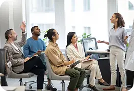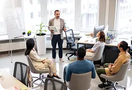 آموزش حضوری در محل سازمان شما برای تیمهای بزرگ، تعامل بیشتر و تمرینهای گروهی. برای کارکنان شرکتهای بزرگ بسیار کارآمد است.
